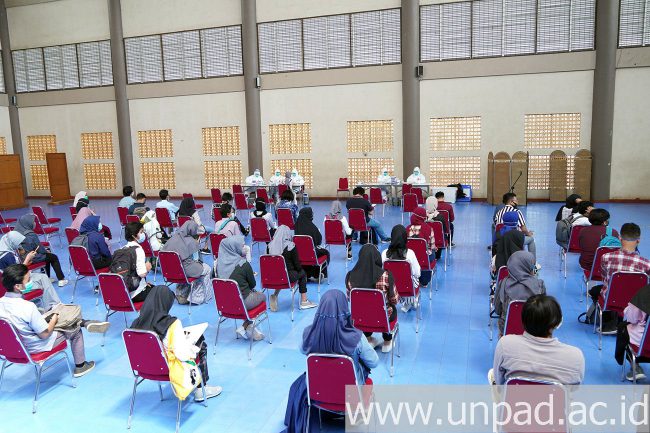 [unpad.ac.id, 11/7/2020] Universitas Padjadjaran bersama Gugus Tugas Percepatan Penanganan Covid-19 Jawa Barat menggelar tes cepat (rapid test) Corona di lingkungan kampus. Pemeriksaan yang ditargetkan diikuti oleh 186 orang ini digelar di Gedung Olahraga Bale Santika Unpad, Jatinangor, Sabtu (11/7).