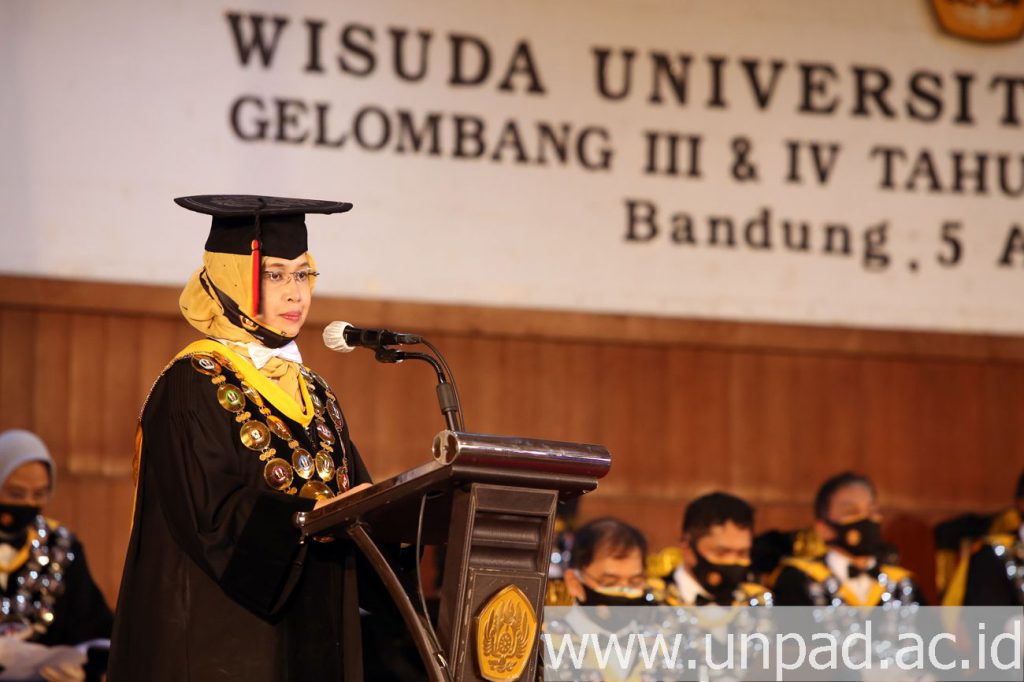 [unpad.ac.id, 5/8/2020] Rektor Universitas Padjadjaran, Prof. Dr. Rina Indiastuti melantik 2.702 wisudawan pada Wisuda Lulusan Gelombang III dan IV Tahun Akademik 2019/2020 yang digelar secara hibrida, atau kombinasi antara penyelenggaraan secara luar jaringan (luring) di Grha Sanusi Hardjadinata Unpad Bandung dan dalam jaringan (daring) melalui siaran langsung melalui streaming.unpad.ac.id, Rabu (5/8).