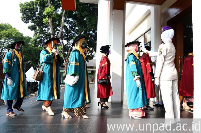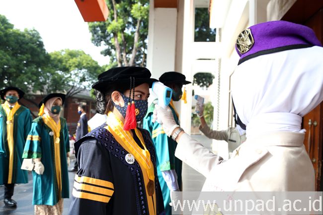 “Pandemi Covid-19 yang merupakan bencana kemanusiaan belum berakhir sehingga wisuda kali ini diselenggarakan agak berbeda karena berbagai penyesuaian dan pembiasaan pada tatanan kehidupan baru. Wisuda yang biasaya dihadiri oleh seluruh wisudawan dan orangtua di Grha Sanusi Hardjadinata, kali ini dilakukan secara kombinasi daring dan kehadiran sebagian kecil pimpinan universitas dan wisudawan,” ujar Rektor Unpad.