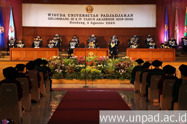 [unpad.ac.id, 5/8/2020] Rektor Universitas Padjadjaran, Prof. Dr. Rina Indiastuti melantik 2.702 wisudawan pada Wisuda Lulusan Gelombang III dan IV Tahun Akademik 2019/2020 yang digelar secara hibrida, atau kombinasi antara penyelenggaraan secara luar jaringan (luring) di Grha Sanusi Hardjadinata Unpad Bandung dan dalam jaringan (daring) melalui siaran langsung melalui streaming.unpad.ac.id, Rabu (5/8).