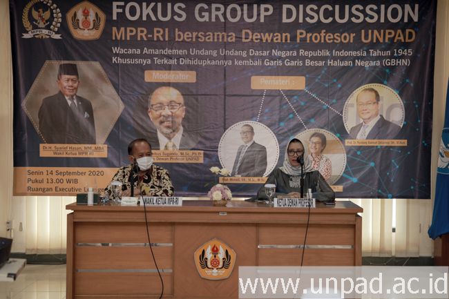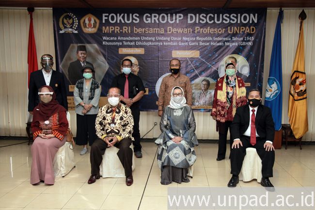 Diskusi yang digelar atas kerja sama MPR RI dengan Dewan Profesor Unpad diselenggarakan dengan protokol kesehatan yang ketat dan menerapkan kombinasi pertemuan luring dan daring.
