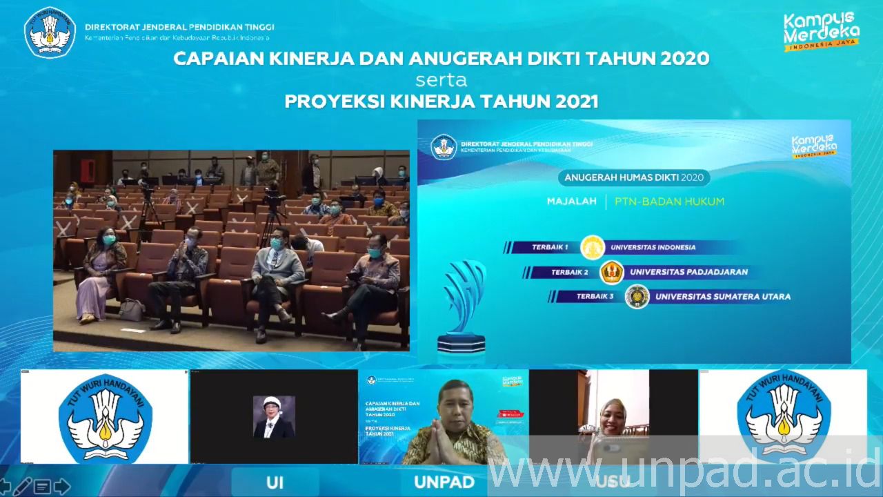 [unpad.ac.id, 23/12/2020] Universitas Padjadjaran meraih dua penghargaan pada ajang Anugerah Humas Dikti (AHD) 2020 yang digelar Direktorat Jenderal Pendidikan Tinggi (Ditjen Dikti) Kemendikbud RI, Rabu (23/12) malam.