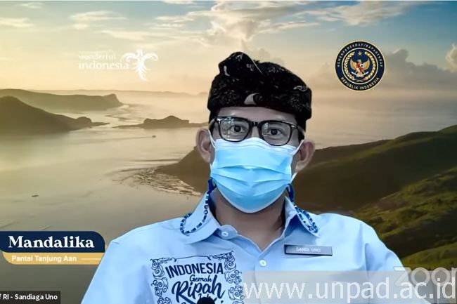 [unpad.ac.id, 13/2/2021] Menteri Pariwisata dan Ekonomi Kreatif atau Menparekraf RI Sandiaga Uno mengajak mahasiswa Unpad untuk menggali semangat kewirausahaan dan menjadi bagian dari pertumbuhan ekonomi kreatif di Indonesia.