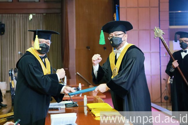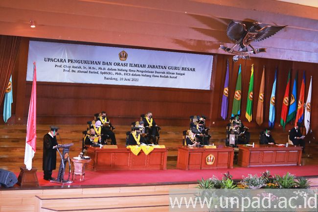 [unpad.ac.id] Ketua Dewan Profesor Universitas Padjadjaran Prof. Arief Anshory Yusuf, PhD, mengukuhkan dua guru besar baru di lingkungan Unpad. Pengukuhan dilakukan dalam upacara yang disiarkan secara langsung dari Grha Sanusi Hardjadinata Unpad, Jalan Dipati Ukur No. 35, Bandung, Kamis (10/6/2021).