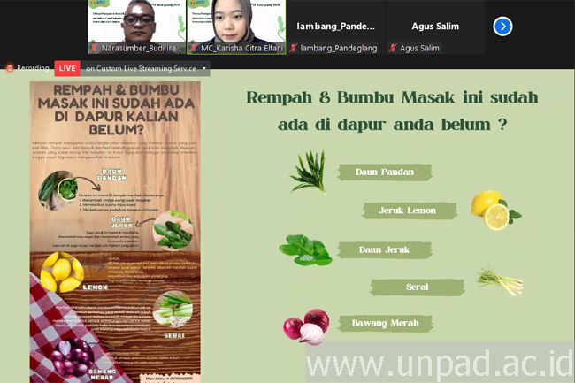 “Salah satu fungsi pekarangan adalah sumber bahan pangan, ada sayuran, buah-buahan, bahan obat tradisional, rempah, dan bumbu masak,” ujar dosen Fakultas MIPA Universitas Padjadjaran Dr. Budi Irawan, M.Si  pada webinar “Optimalkan Fungsi Pekarangan Untuk Pemenuhan Gizi Keluarga” yang digelar secara daring, Rabu (4/8).