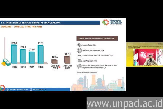 Hal tersebut disampaikan Menperin saat memberikan kuliah umum “Revitalisasi Pembangunan Industri Manufaktur pada Masa dan Pasca Pandemi Covid-19” yang digelar Fakultas Ekonomi dan Bisnis Universitas Padjadjaran secara virtual, Selasa (31/8).