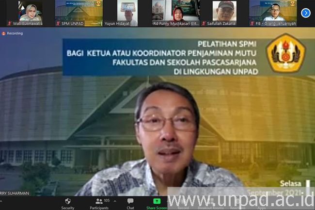 Dosen Fakultas Ekonomi dan Bisnis Universitas Padjadjaran Dr. Harry Suharman, SE., MA., menjadi narasumber pada Pelatihan Sistem Penjaminan Mutu Internal yang digelar Satuan Penjaminan Mutu Unpad, Selasa (14/9/2021).*