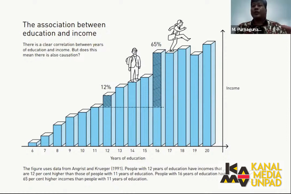 “Ketiga bisa dengan kredibel dan yakin mengubungkan bagaimana analisis hubungan dari variabel yang diamati,” kata Purna pada diskusi Satu Jam Berbincang Ilmu “Revolusi Eksperimen Alamiah dan Nobel Ekonomi 2021” yang digelar Dewan Profesor Unpad, Sabtu (20/11/2021).