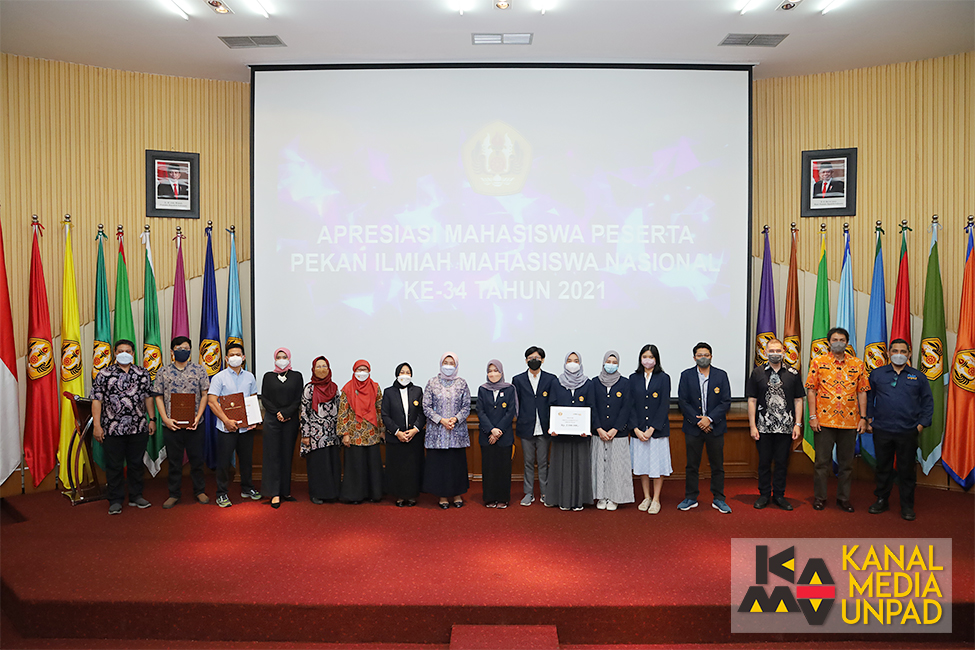 [Kanal Media Unpad] Rektor Universitas Padjadjaran Prof. Rina Indiastuti memberikan apresiasi kepada para mahasiswa peserta Pekan Ilmiah Mahasiswa Nasional atau Pimnas ke-34, 26 – 30 Oktober lalu. Pemberian apresiasi dilakukan dalam pertemuan yang digelar di Bale Sawala Gedung Rektorat Unpad, Jatinangor, Rabu (10/11/2021).