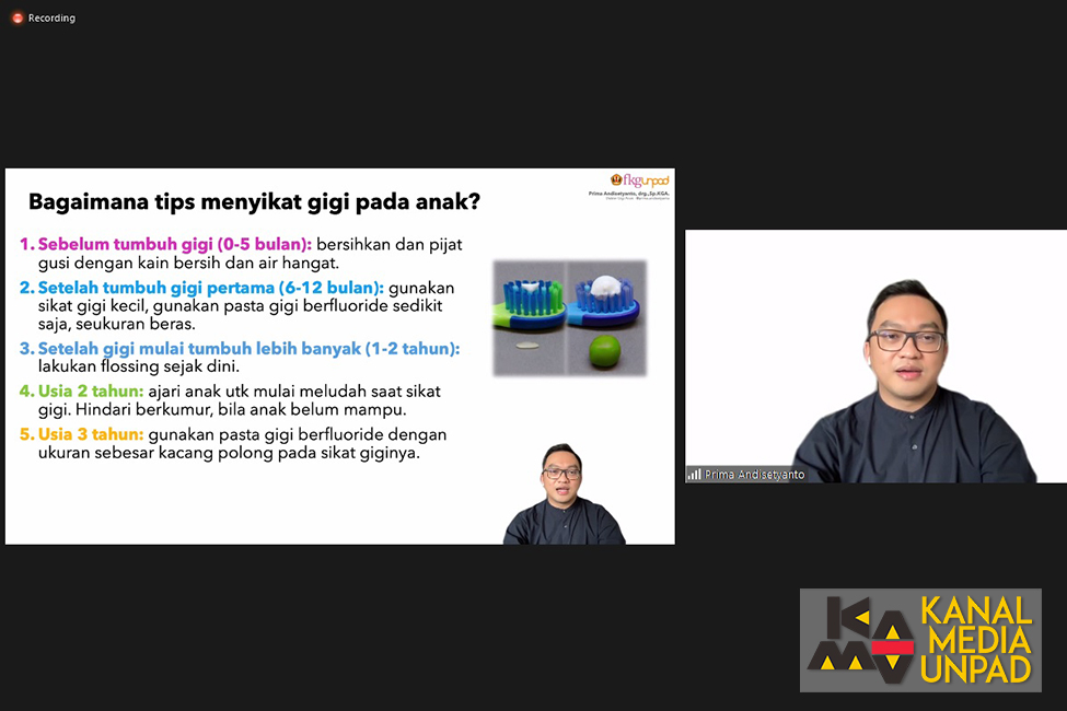 Dosen Fakultas Kedokteran Gigi Universitas Padjadjaran Prima Andisetyanto, drg., Sp.KGA, menjadi pembicara pada Webinar “Senyum Anak: Tugas Kita untuk Menjaganya” yang digelar pada Sabtu (11/12/2021).