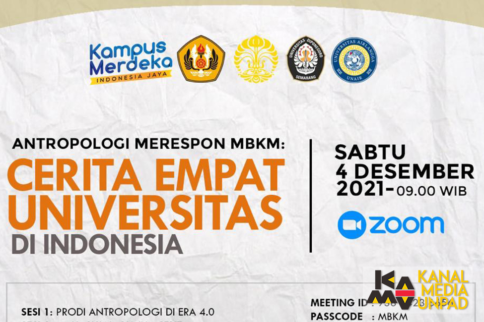 [Kanal Media Unpad] Program Studi Antropologi Fakultas Ilmu Sosial dan Ilmu Politik Universitas Padjadjaran bekerja sama dengan Prodi Antropologi di tiga perguruan tinggi nasional menggelar webinar dan gelar wicara bertema “Antropologi Merespons MBKM: Cerita Empat Universitas di Indonesia”, Sabtu (4/12/2021).