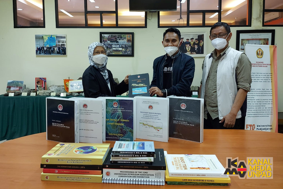 Sumbangan bahan pustaka berupa buku, jurnal, dan materi workshop di bidang geologi, minyak, dan gas bumi diserahkan secara simbolis oleh pewakilan IPA La Ode Achyar kepada Dekan FTG Unpad Prof. Mega Fatimah Rosana, PhD, di Kampus Pascasarjana FTG Unpad, Jalan Dipati Ukur No. 35, Bandung, Rabu (29/12/2021) lalu.