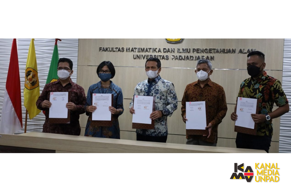 Kerja sama diwujudkan melalui penandatangan Perjanjian Kerja Sama oleh Dekan FMIPA Prof. Dr. Iman Rahayu, M.Si., Dekan Fapsi Zahrotur Rusyda Hinduan, S.Psi., MOP., Ph.D., Psikolog, dan Dekan Fikom Dr. Dadang Rahmat Hidayat, M.Si., dengan Direktur Jenderal PKTN Kemendag Veri Anggriono Sutiarto di Aula Einstein Gedung Prof. Otto Soemarwoto FMIPA Unpad, Jatinangor, Jumat (14/1/2022).