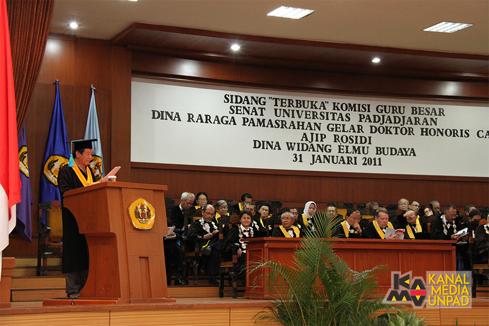 Bahkan sastrawan (alm) Ajip Rosidi ketika memaparkan disertasi dan pidato pengukuhan Doktor Honors Causa di Unpad 2011 silam juga menggunakan bahasa Sunda.