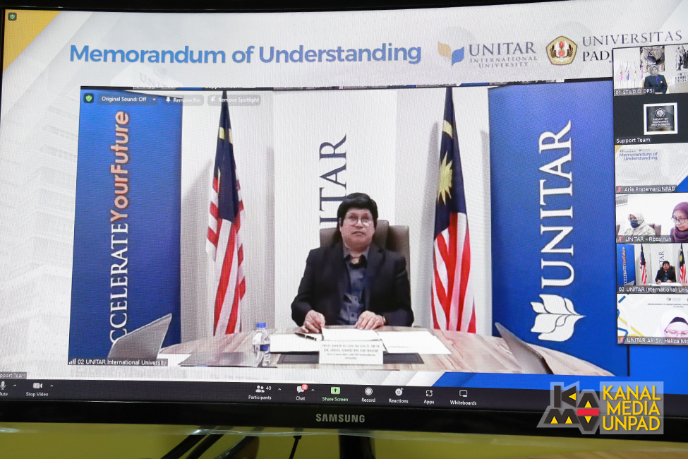 Kerja sama diwujudkan melalui penandatanganan Nota Kesepahaman oleh Rektor Unpad Prof. Rina Indiastuti dengan Vice Chancellor Unitar International University Prof. Emeritus Tan Sri Dato’ Sri Ir. Dr. Sahol Hamid bin Abu Bakar secara virtual, Kamis (30/6/2022).