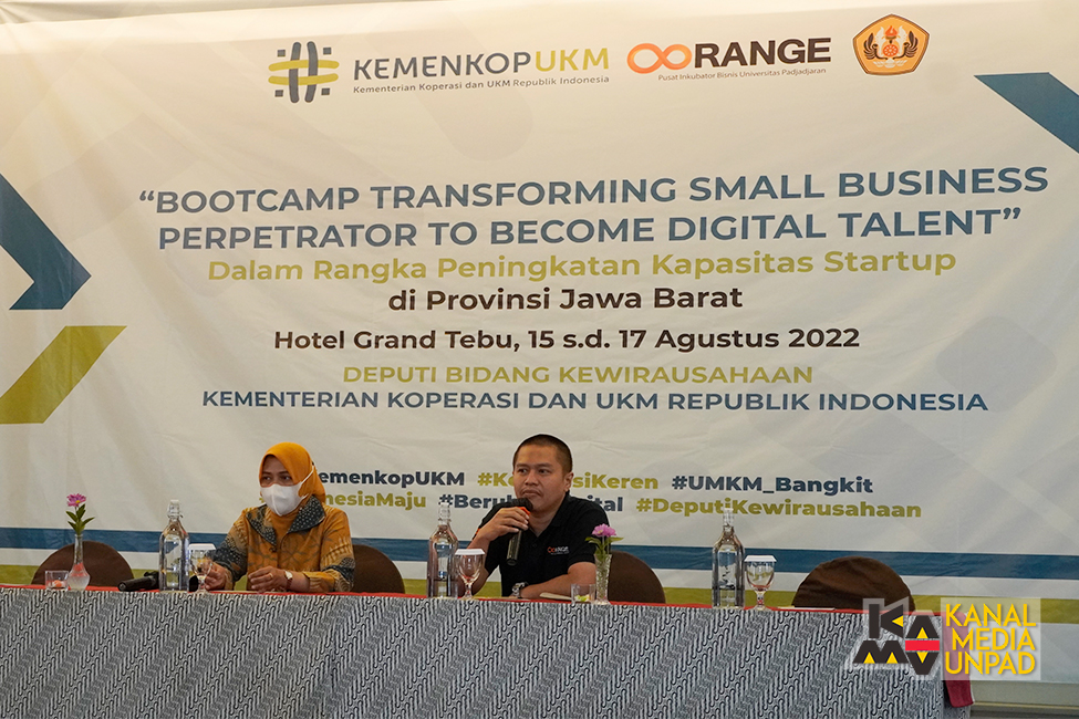 [Kanal Media Unpad] Untuk meningkatkan kapasitas usaha rintisan (startup), khususnya di Jawa Barat, Pusat Inkubator Bisnis/Oorange Unpad bekerja sama dengan Kementerian Koperasi dan UKM RI menyelenggarakan “Bootcamp Transforming Small Business Perpetrator to Become Digital Talent” di Hotel Grand Tebu, Bandung, 15-17 Agustus 2022.
