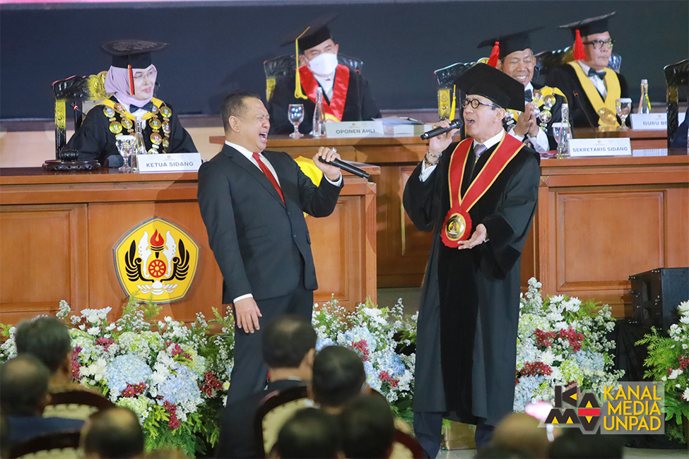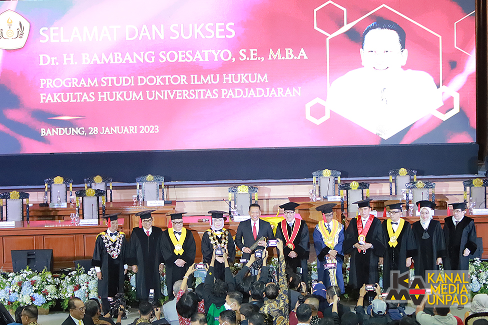[Kanal Media Unpad] Ketua MPR RI Bambang Soesatyo meraih gelar Doktor Bidang Ilmu Hukum pada Fakultas Hukum Universitas Padjadjaran. Gelar Doktor dengan yudisium Cumlaude tersebut diperoleh Bambang pada Sidang Terbuka Promosi Doktor yang digelar di Grha Sanusi Hardjadinata Unpad Kampus Iwa Koesoemasoemantri, Bandung, Sabtu (28/1/2023).