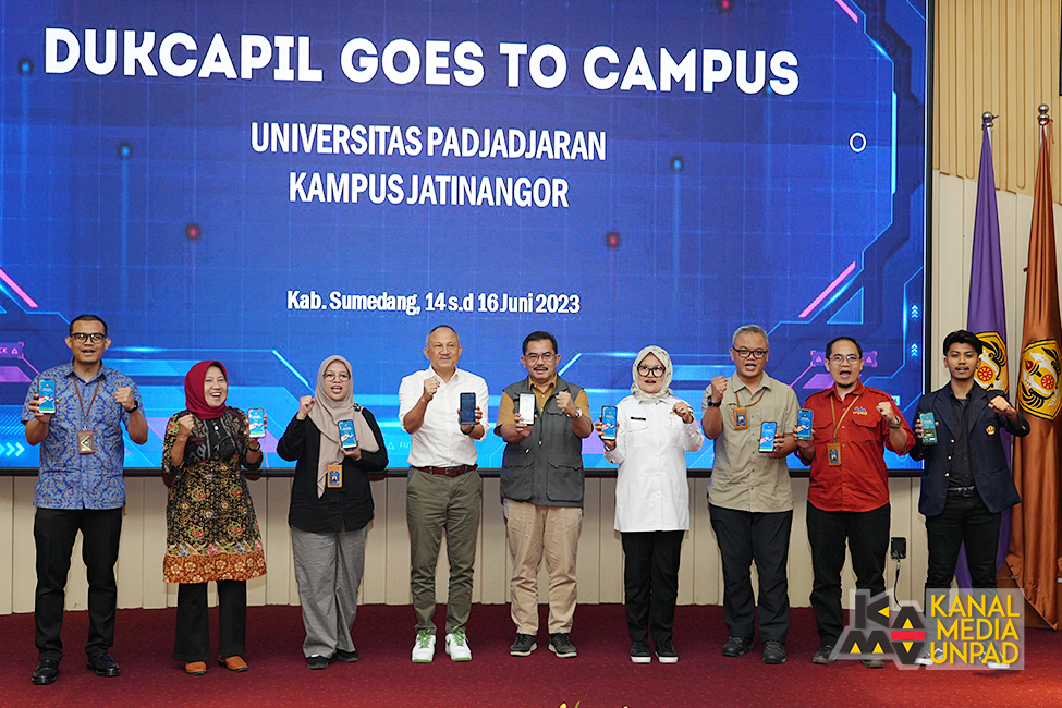 [Kanal Media Unpad] Universitas Padjadjaran bersama Dinas Kependudukan dan Catatan Sipil (Disdukcapil) Provinsi Jawa Barat menggelar sosialisasi Identitas Kependudukan Digital (IKD) bertema “Dukcapil Goes to Campus” yang diselenggarakan di Bale Sawala Gedung Rektorat Unpad, Jatinangor, Rabu (14/6/2023).