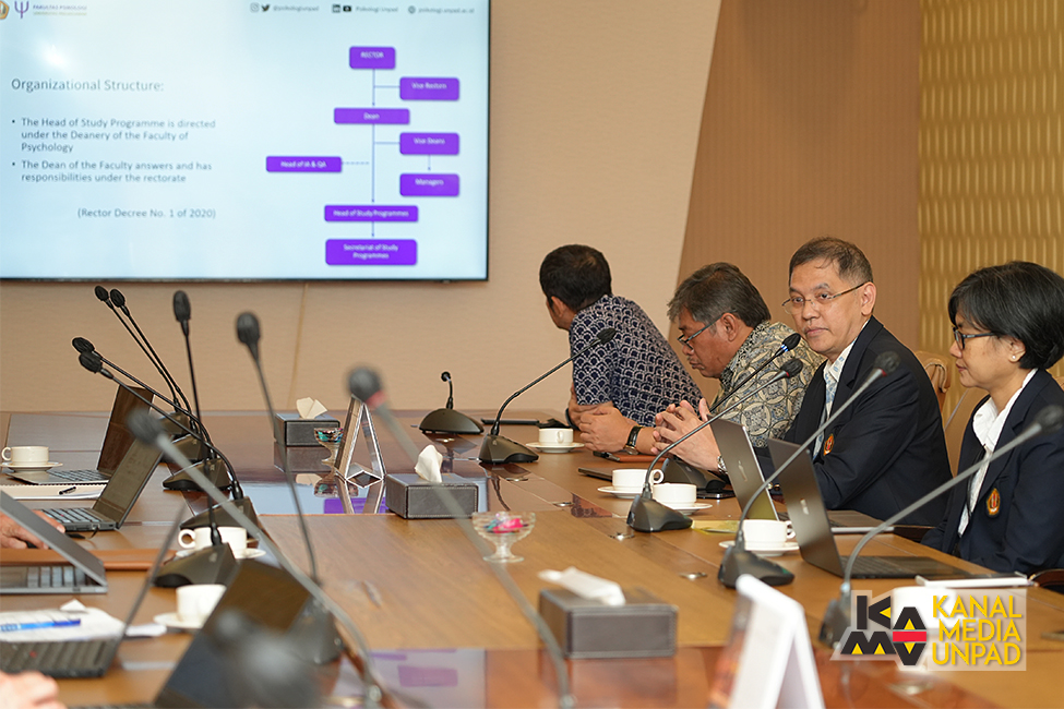 Visitasi diterima secara resmi oleh Wakil Rektor Bidang Akademik dan Kemahasiswaan Unpad Prof. Arief S. Kartasasmita bersama sejumlah pimpinan universitas serta Dekan Fapsi Zahrotur Rusyda Hinduan, PhD., beserta pimpinan di lingkungan Fapsi di Ruang Rapat Rektor Gedung Rektorat Unpad, Jatinangor, Selasa (20/6/2023).