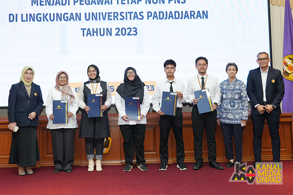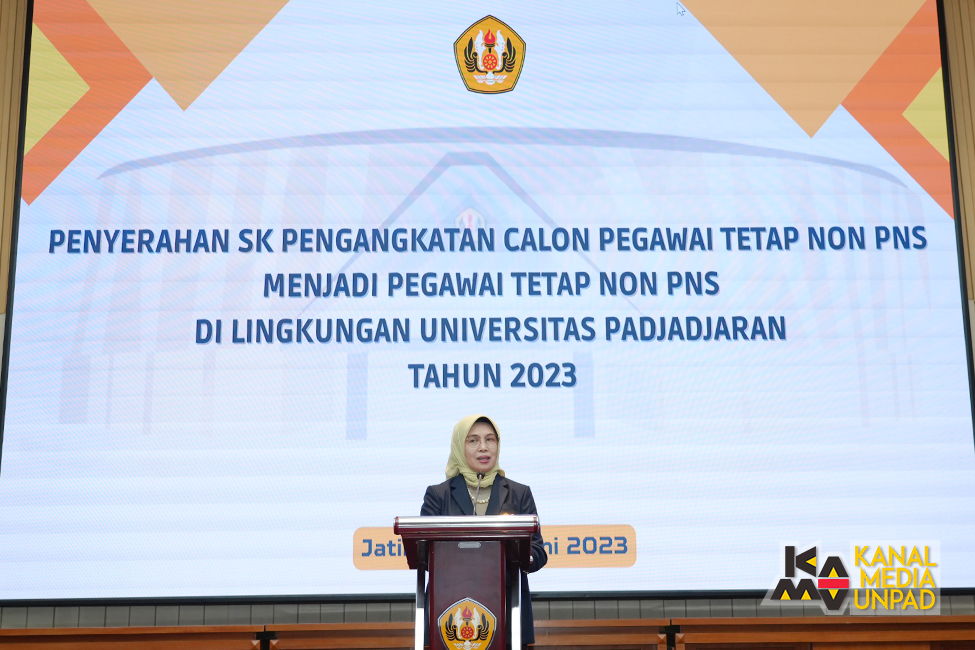 [Kanal Media Unpad] Rektor Universitas Padjadjaran Prof. Rina Indiastuti, S.E., M.SIE., menyerahkan Surat Keputusan (SK) terkait pengangkatan Calon Pegawai Tetap Non-PNS menjadi Pegawai Tetap Non-PNS di lingkungan Unpad tahun 2023.
