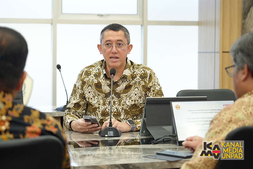 Nota Kesepahaman ditandatangani Wakil Rektor Bidang Riset dan Inovasi Prof. Dr. Ir. Hendarmawan, M.Sc., yang mewakili Rektor Unpad Prof. Rina Indiastuti dengan Direktur Utama PT. Telkomsel Ekosistem Digital (TED) Andi Kristianto.