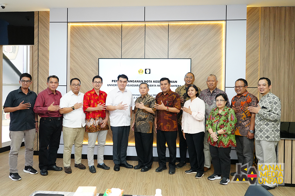 Nota Kesepahaman tersebut ditandatangani Rektor Unpad yang dalam kesempatan tersebut diwakili Wakil Rektor Bidang Organisasi dan Perencanaan Prof. Drs. Yanyan Mochamad Yani, MAIR., Ph.D, dan Direktur Utama PT. Kerta Mulya Sejahtera Mulyo Setiawan. Acara tersebut juga dihadiri pimpinan Fakultas Peternakan Unpad.