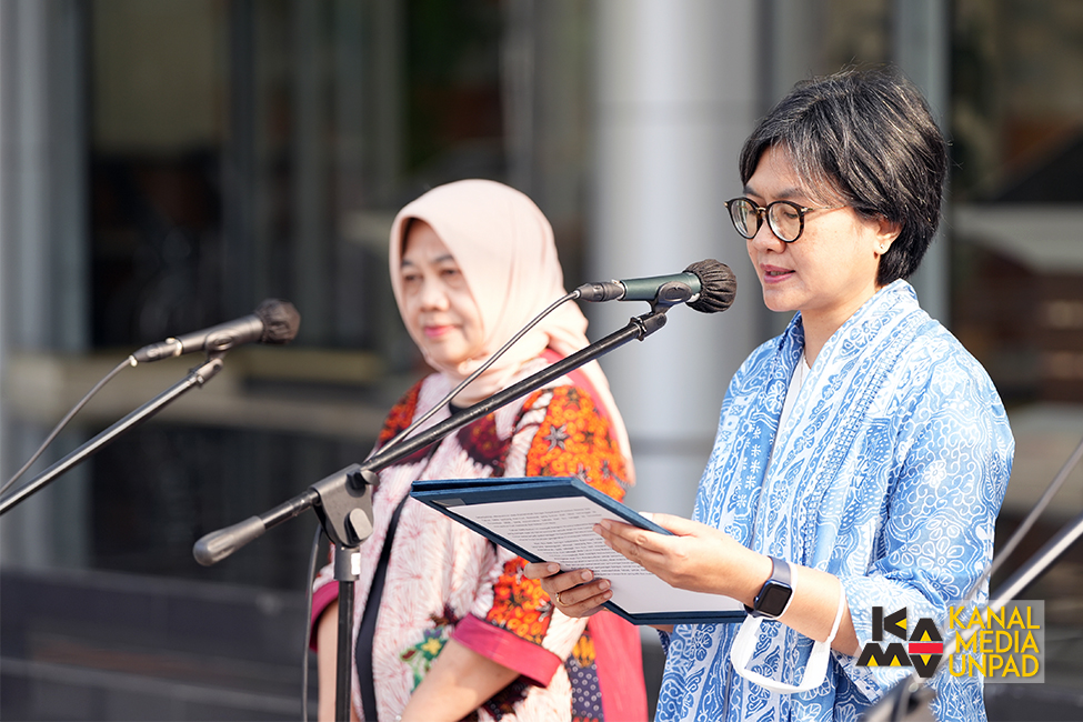Bertindak selaku Pembina Upacara adalah Rektor Unpad Prof. Rina Indiastuti. Dalam pidatonya, Rektor menyampaikan bahwa peringatan Hari Ibu yang lahir pasca-digelarnya Kongres Perempuan Pertama pada 22 Desember 1928 merupakan titik penting perjuangan perempuan Indonesia.