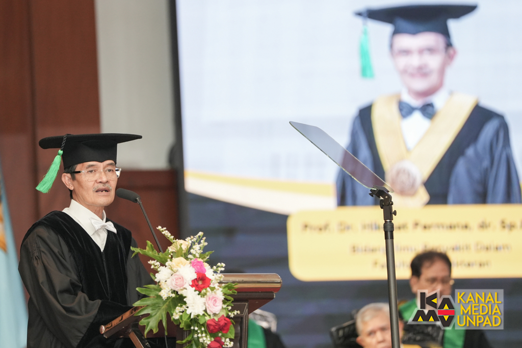 Pada kesempatan tersebut, Guru Besar Bidang Ilmu Penyakit Dalam Prof. Hikmat Permana menyampaikan orasi ilmiah yang berjudul “Peluang Digitalisasi Rujukan Kesehatan Penyandang Diabetes Mellitus Dalam Membangun Indonesia Sehat”.