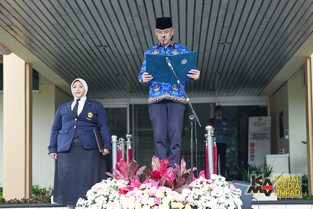 Bertindak sebagai Pembina Upacara yaitu Pelaksana Tugas Rektor Unpad Prof. Arief S. Kartasasmita. Dalam upacara tersebut, Prof. Arief membacakan amanat Kepala Badan Pembinaan Ideologi Pancasila RI Yudian Wahyudi.