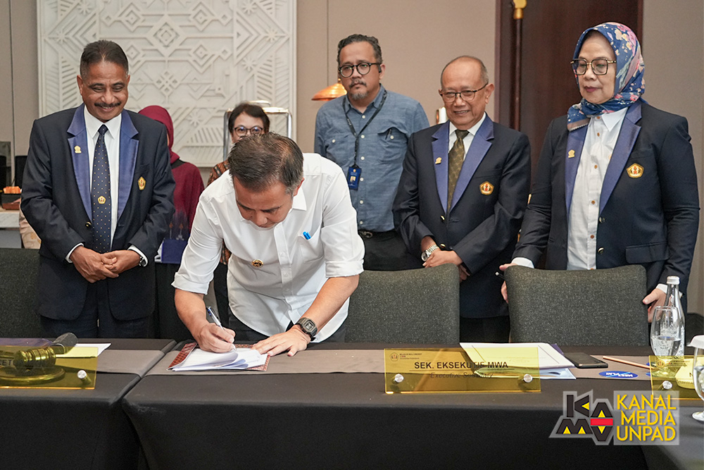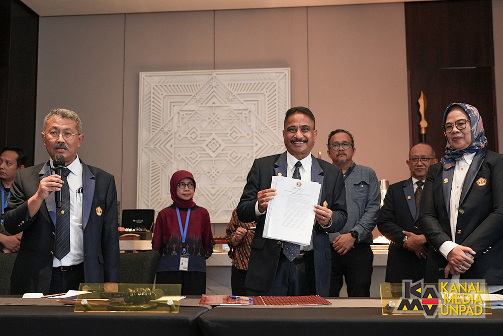 Ketua MWA Unpad Dr. Arief Yahya menjelaskan, rapat pleno tertutup tersebut dihadiri 15 anggota MWA Unpad. Adapun penetapan Rektor secara musyawarah dan mufakat sendiri sesuai amanat Peraturan MWA Unpad Nomor 1 Tahun 2024.