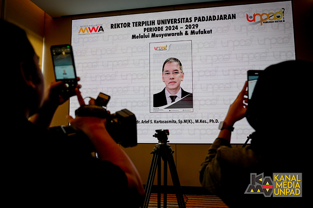 [Kanal Media Unpad] Majelis Wali Amanat Universitas Padjadjaran menetapkan Prof. dr. Arief S. Kartasasmita, dr., Sp.M(K), M.Kes., PhD, sebagai Rektor Terpilih Unpad Periode 2024-2029. Penetapan Prof. Arief dilakukan secara aklamasi dalam Rapat Pleno Tertutup MWA yang digelar di Pullman Bandung Grand Central, Bandung, Kamis (4/7/2024).