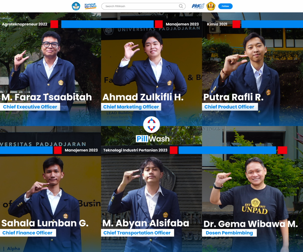 Produk bernama “PillWash” tersebut dikembangkan oleh Muhammad Faraz Tsaabitah (Agroteknopreneur), Putra Rafli Ramdani (Kimia), Ahmad Zulkifli Hanif (Manajemen), M. Abyan Alsifaba (Teknologi Industri Pertanian), dan Sahala Lumban Gaol (Manajemen) dengan dosen Pendamping Dr. Gema Wibawa Mukti, SP., MP.