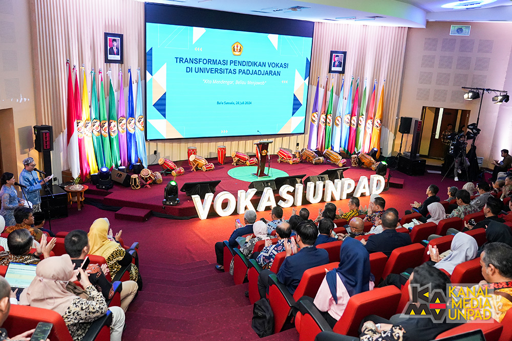 [Kanal Media Unpad] Sebagai upaya mewujudkan Transformasi Pendidikan Vokasi ,Universitas Padjadjaran melakukan peluncuran Sekolah Vokasi melalui acara Peluncuran Sekolah Vokasi Unpad & Talkshow “Kita Mendengar, Beliau Menjawab” yang diselenggarakan di Bale Sawala, Gedung Rektorat Unpad, Jatinangor, Jumat (26/7/2024).