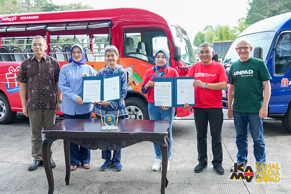 Penyerahan tersebut ditandai dengan penandatanganan Berita Acara Serah Terima Kendaraan Roda Empat Angkutan Kampus oleh Wakil Rektor Bidang Sumber Daya dan Keuangan Unpad Prof. Dr. Ida Nurlinda, M.H., kepada Consumer Marketing Manager Alfagift Deny Dwi Retnowati.