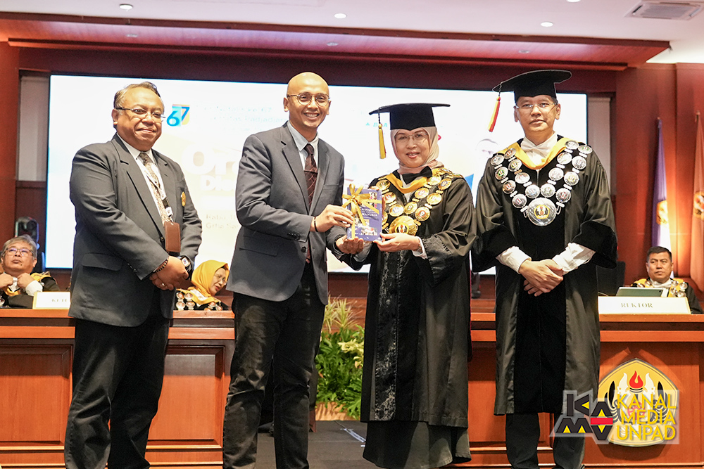 Sementara Rektor Unpad dalam pidatonya memaparkan empat topik, yaitu refleksi 67 tahun Unpad dan penekanan apa yang telah dikerjakan selama 5 tahun terakhir sesuai dengan renstra Unpad 2024, kontribusi Unpad pada dunia pendidikan tinggi, penguatan strategi internasionalisasi untuk mewujudkan kualitas Unpad menjadi world class university, serta tata kelola yang baik melalui penerapan good university governance (GUG) yang didukung oleh ilmu pengetahuan dan teknologi (iptek) dan integritas SDM.
