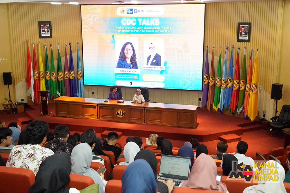 [Kanal Media Unpad] Pusat Pengembangan Karir (Career Development Center / CDC) Universitas Padjadjaran mengadakan seminar CDC Talks bertema “Design Your Life: Learn About Design Thinking Methodology to Plan Your Career and Life Goals” di Bale Sawala Gedung Rektorat, Unpad kampus Jatinangor pada 10 Oktober 2024.