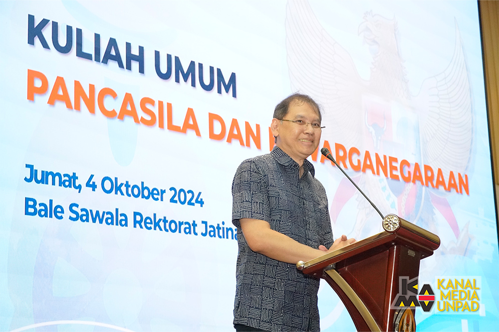 Hal tersebut disampaikan Deputi Bidang Pemantapan Nilai-Nilai Kebangsaan Lemhannas, Mayor Jenderal TNI (Purn) Agus Arif Fadila, S.I.P., dalam Kuliah Umum Mata Kuliah Tahap Persiapan Bersama (TPB) Pancasila dan Kewarganegaraan Unpad yang diselenggarakan di Bale Sawala, Gedung Rektorat Unpad, Jatinangor, Jumat, 4 Oktober 2024.