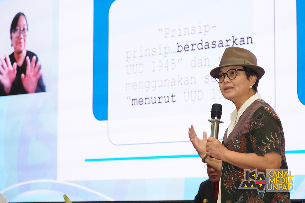 Sementara Dosen Fakultas Hukum Unpad, Prof. Susi Dwi Harijanti, S.H., LL.M., PH.D., memaparkan materi kuliah umum mengenai prinsip-prinsip penyelenggaraan negara berdasarkan Undang-Undang Dasar (UUD) 1945.