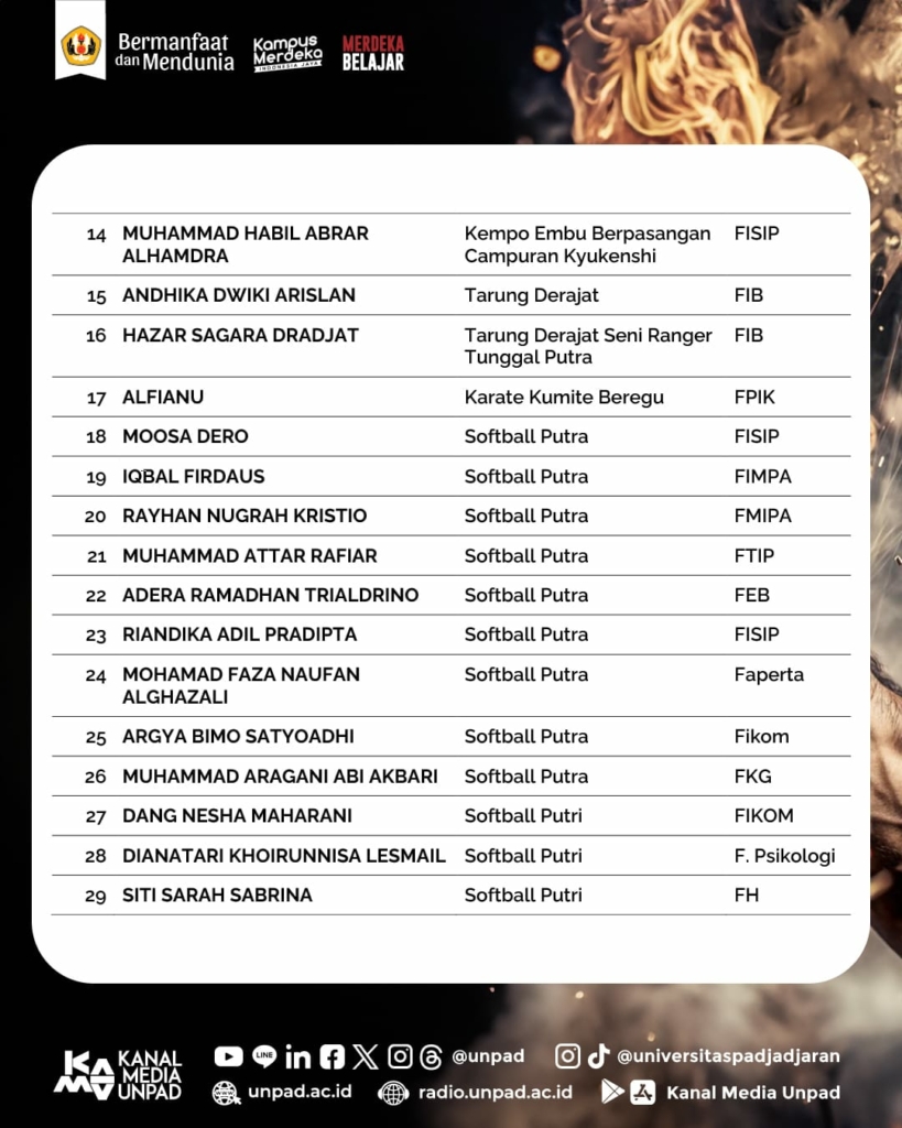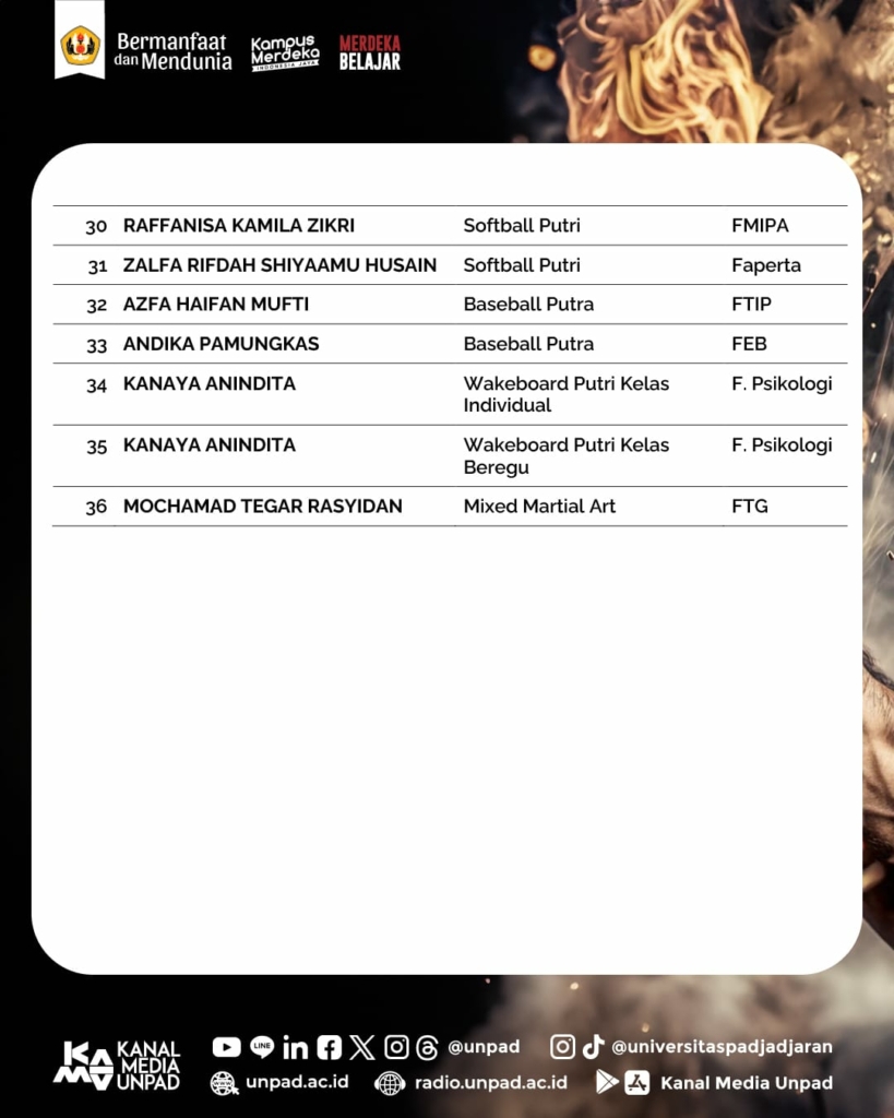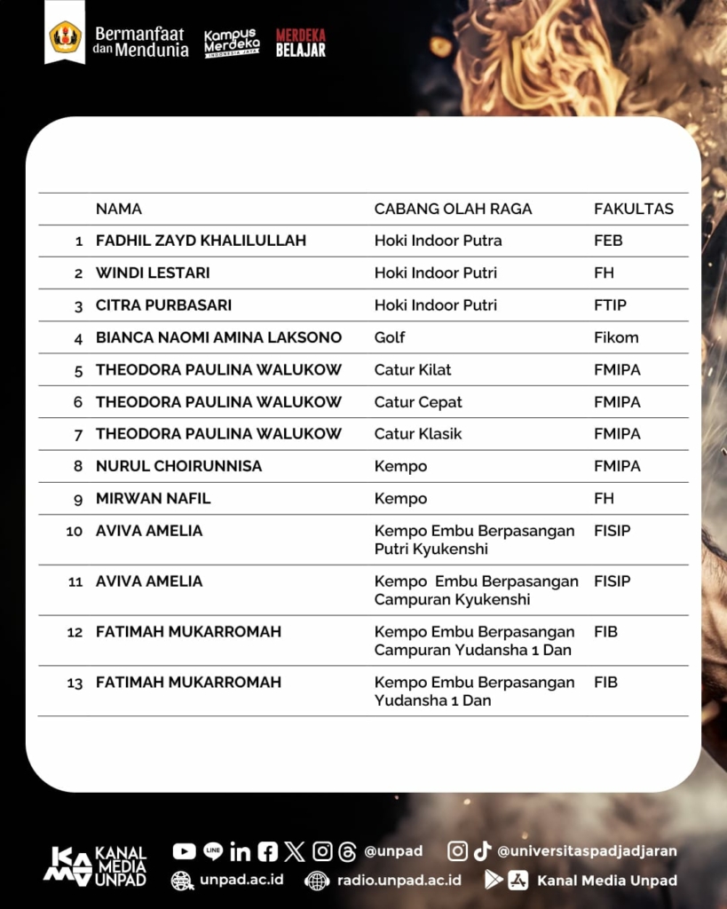 Dengan dukungan universitas melalui UKM, Unpad optimis dapat melahirkan atlet berprestasi yang siap mengharumkan nama almamater.*