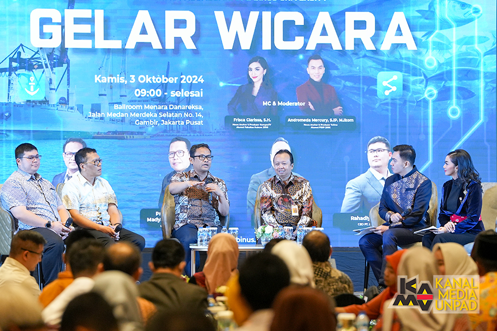 Pada kesempatan tersebut, turut diselenggarakan Gelar Wicara bertajuk “Transformasi Digital dalam mendukung Ekonomi Biru: Peluang dan Tantangan” yang menghadirkan narasumber Dr. Agam Bayu Suryanto, S.E., M.B.A. (Kepala Divisi Kerja Sama dan Pengembangan Beasiswa LPDP), Prof. Dr. sc. Agr. Yudi Nurul Ihsan, S.Pi., M.Si (Dekan Fakultas Perikanan dan Ilmu Kelautan Unpad), Prof. Dr. Evaristus Didik Madyatmadja, S.T., M.Kom., M.T. (Lecturer Specialist Binus University), dan Rahadiyan Dewangga (CEO PT IJO Inovasi Indonesia).