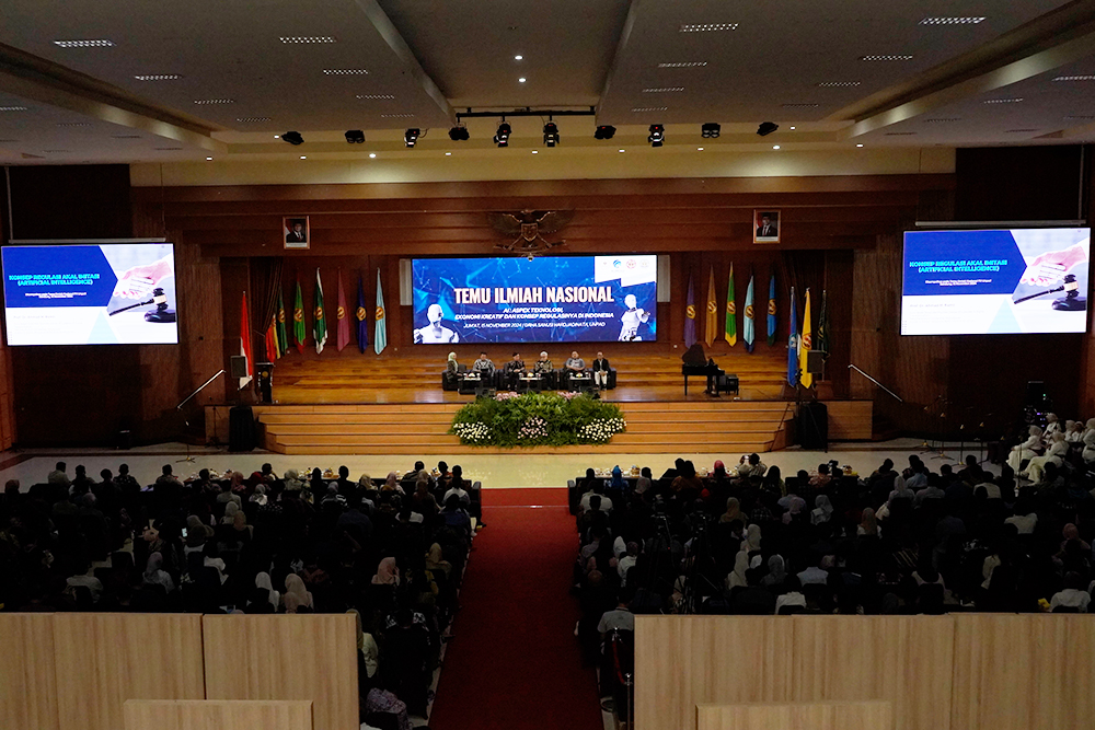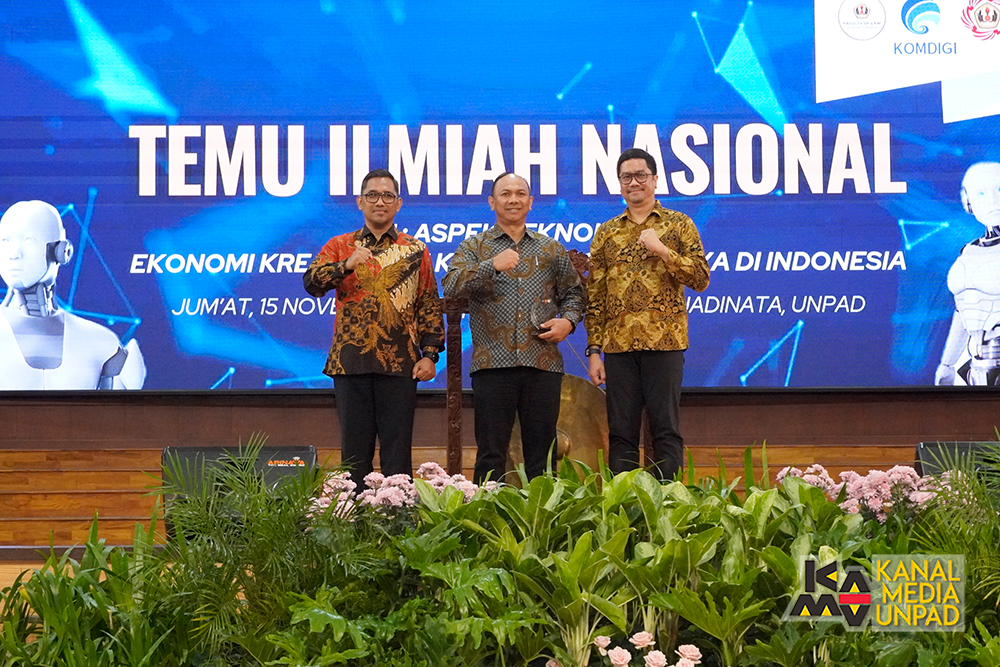 [Kanal Media Unpad] Direktorat Jenderal Penyelenggaraan Pos dan Informatika Kementerian Komunikasi dan Digital RI bersama Universitas Padjadjaran melalui Fakultas Hukum Unpad menggelar kegiatan Temu Ilmiah Nasional yang bertajuk “AI: Aspek Teknologi, Ekonomi Kreatif, dan Konsep Regulasinya di Indonesia” yang digelar di Grha Sanusi Hardjadinata Kampus Iwa Koesoemasoemantri, Bandung, Jumat, 15 November 2024.