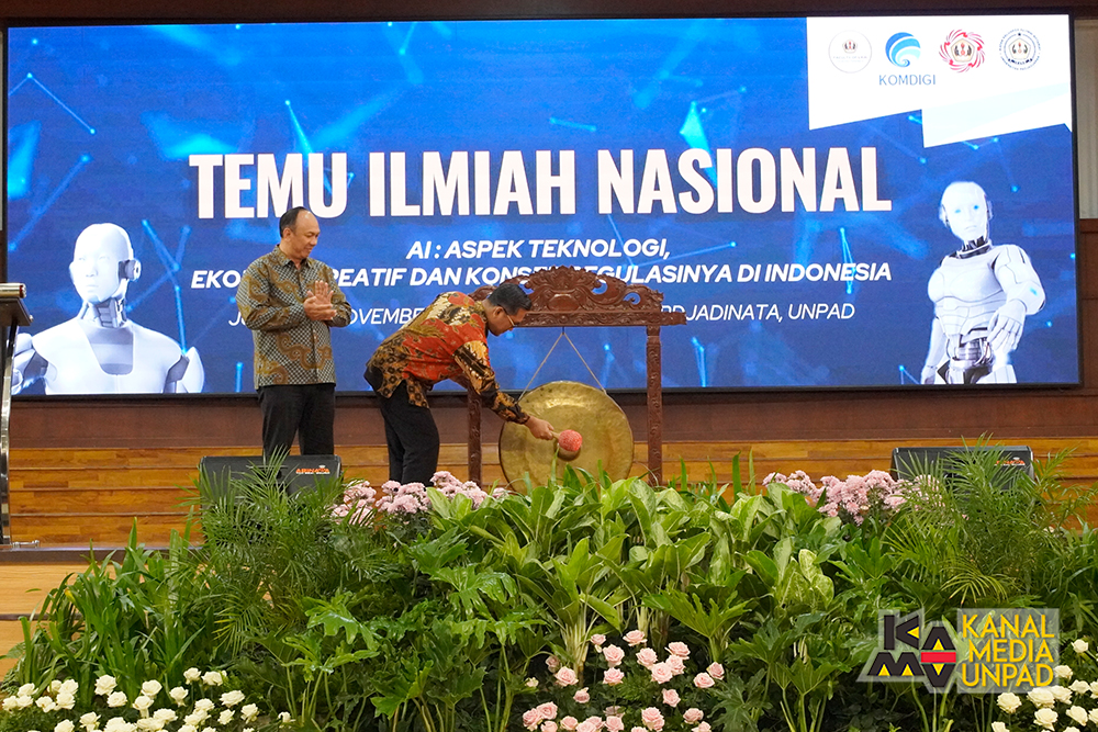 Kegiatan Temu Ilmiah Nasional ini secara langsung dibuka oleh Wakil Rektor Bidang Sumber Daya dan Tata Kelola Unpad Prof. Dr. R. Widya Setiabudi Sumadinata, S.Si., S.IP., MT., M.Han. Dalam sambutannya, Prof. Widya menyampaikan apresiasi atas terselenggaranya kegiatan ini, serta dukungan terhadap perkembangan dan pengaturan terkait dengan AI di Indonesia.