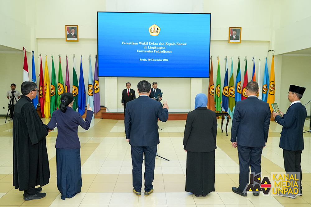 [Kanal Media Unpad] Rektor Universitas Padjadjaran, Prof. Arief Sjamsulaksan Kartasasmita, melantik sejumlah pimpinan di lingkungan Unpad, terdiri dari tiga Kepala Kantor dan satu Wakil Dekan. Kegiatan pelantikan tersebut diselenggarakan di Ruang Serba Guna, gedung 2 lantai 4 Universitas Padjadjaran, Jl. Dipati Ukur 35 Bandung, Senin 30 Desember 2024.