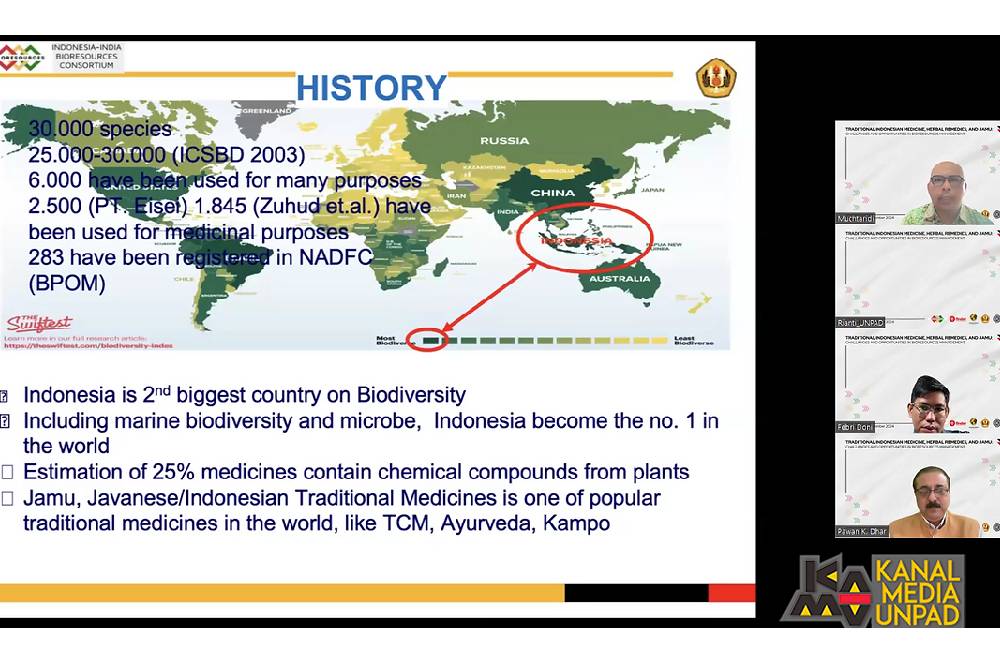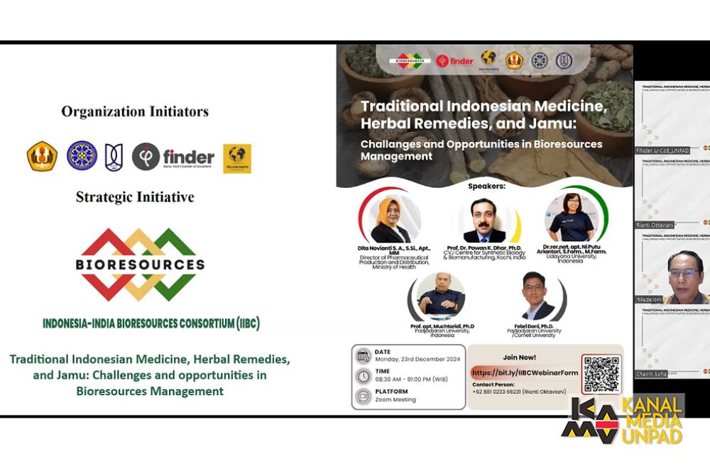 [Kanal Media Unpad] Universitas Padjadjaran melalui Indonesia-India Bioresources Consortium (IIBC) menggelar webinar bertajuk “Traditional Indonesian Medicine, Herbal Remedies, and Jamu: Challenges and Opportunities in Bioresources Management“. Kegiatan yang diselenggarakan secara daring pada Senin, 23 Desember 2024 ini menjadi momentum penting untuk memperkuat kerja sama dalam pengelolaan sumber daya hayati antara Indonesia dan India.