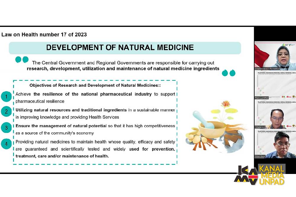 Prof. apt. Muchtaridi, Ph.D., dari Unpad, memperkenalkan strategi seperti database ASEAN Natural Materials untuk mendukung penelitian senyawa bioaktif dan desain obat berbasis komputer. Kolaborasi dengan negara-negara seperti Malaysia, Thailand, dan Jepang diharapkan dapat mempercepat pengembangan Jamu menjadi produk fitofarmaka internasional.