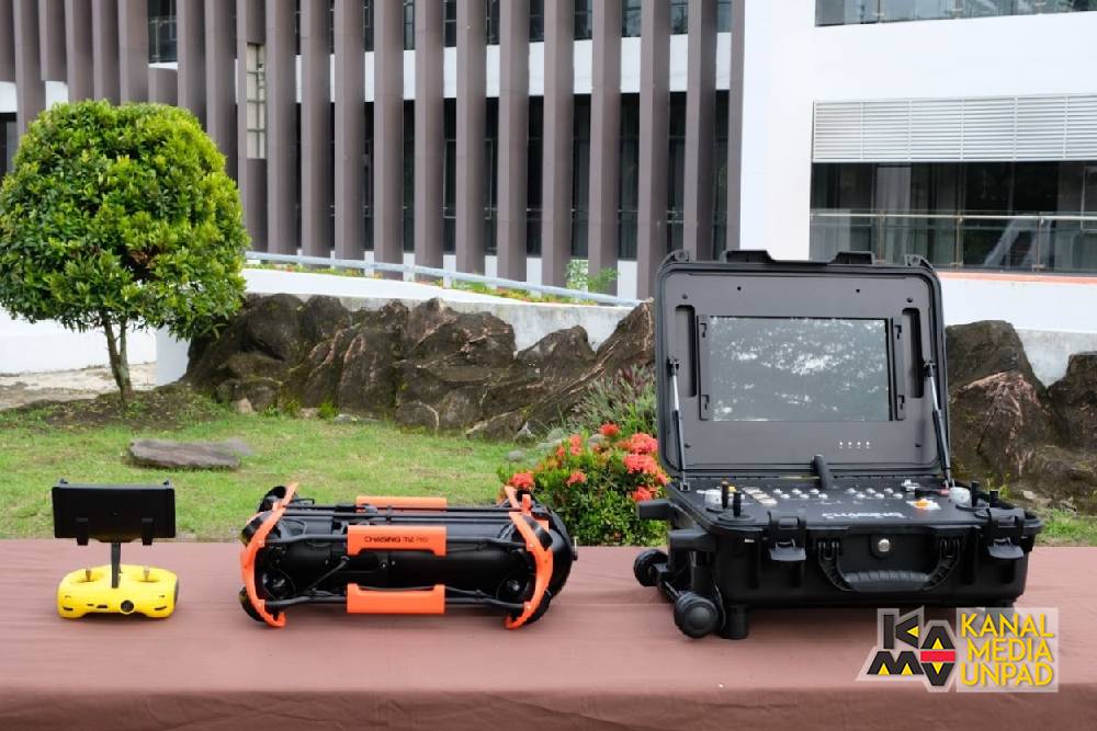 [Kanal Media Unpad] Universitas Padjadjaran melalui Program Studi Perikanan Laut Tropis Kampus Program Studi Di Luar Kampus Utama (PSDKU) Pangandaran menerima hibah satu unit underwater remotely operated vehicle (ROV) CHASING M2 Pro ROV Industrial Scale. Hibah ini diberikan oleh tim peneliti program sehaT Untuk Nelayan IndonesiA (TUNA) Unpad yang dipimpin oleh Alexander Khan, S.Pi., M.Si., Ph.D, pada Senin, 14 Januari 2025 di Kampus PSDKU Cintaratu, Pangandaran.
