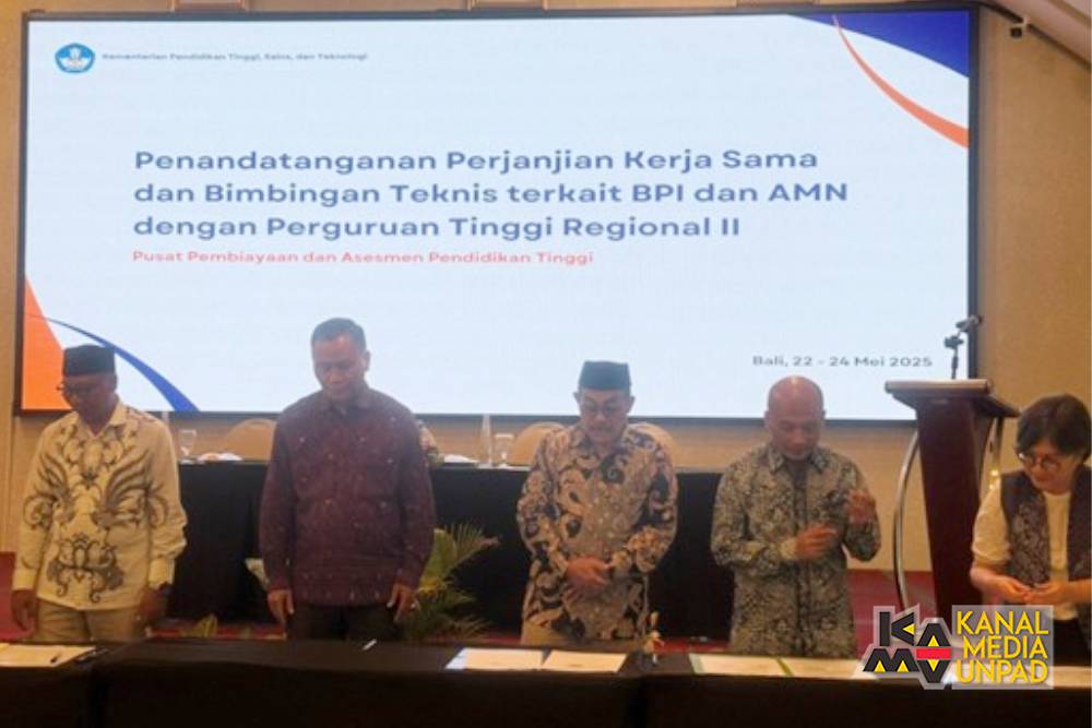 [Kanal Media Unpad] Universitas Padjadjaran menandatangani Perjanjian Kerja Sama dengan Pusat Pembiayaan dan Asesmen Pendidikan Tinggi (PPAPT) Kementerian Pendidikan Tinggi, Sains dan Teknologi (Kemdiktisaintek) terkait Beasiswa Pendidikan Indonesia (BPI) dan Asrama Mahasiswa Nusantara (AMN) di Jimbaran, Bali, Jumat 23 Mei 2025.