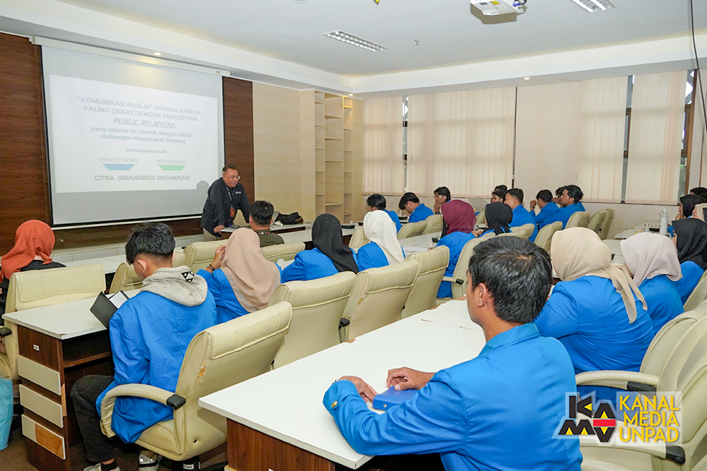 Kunjungan tersebut dimulai dengan pemaparan materi mengenai Kantor Komunikasi Publik Universitas Padjadjaran yang meliputi tugas dan fungsinya sebagai materi untuk mata kuliah Komunikasi Publik. Pemaparan materi ini disampaikan oleh Kepala Kantor Komunikasi Publik Unpad, Dandi Supriadi, M.A. (SUT), PhD.