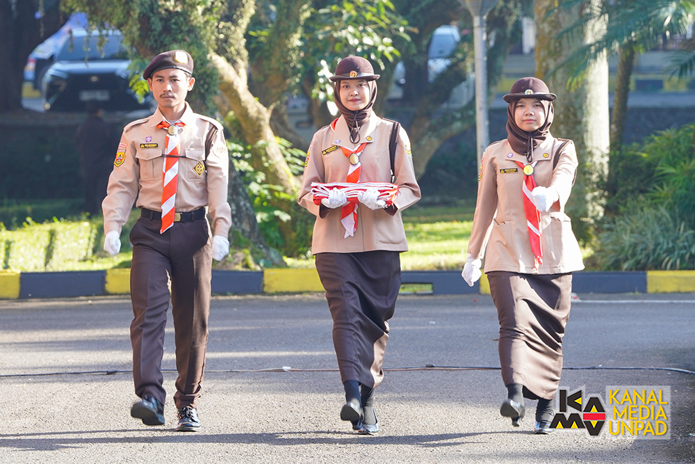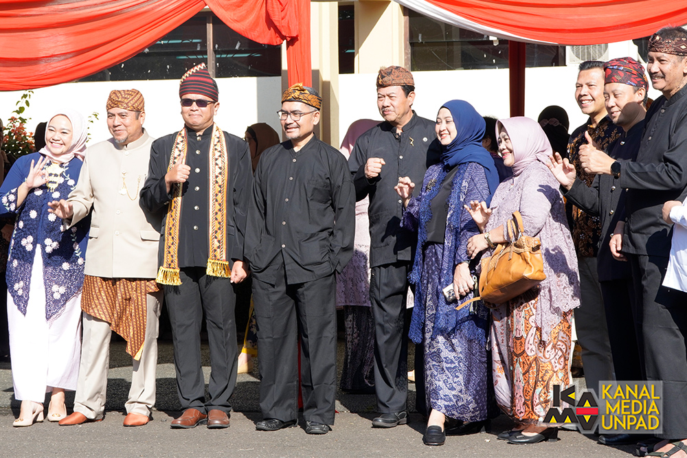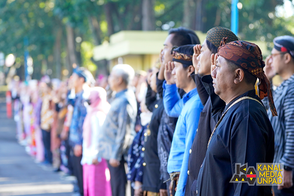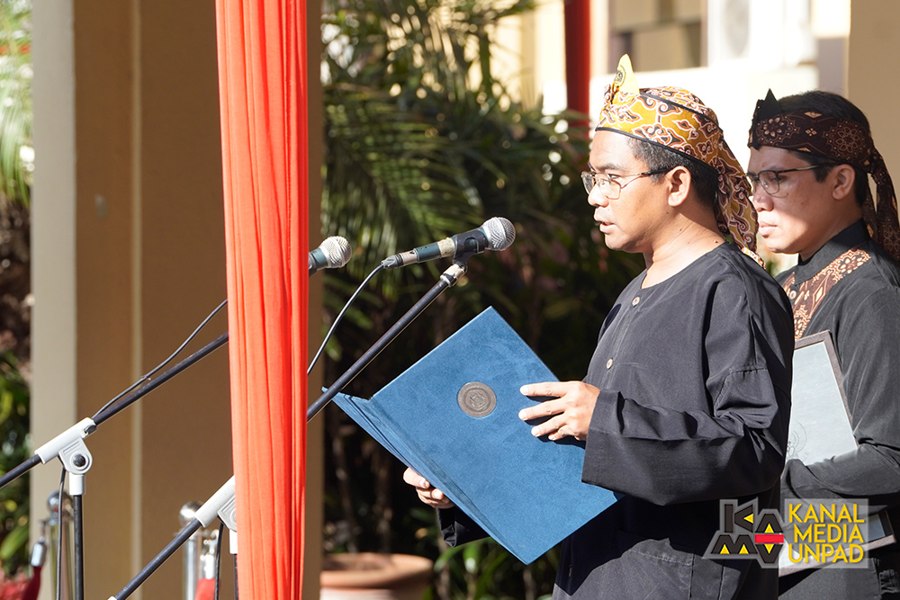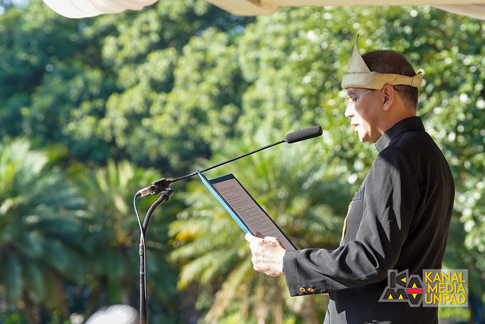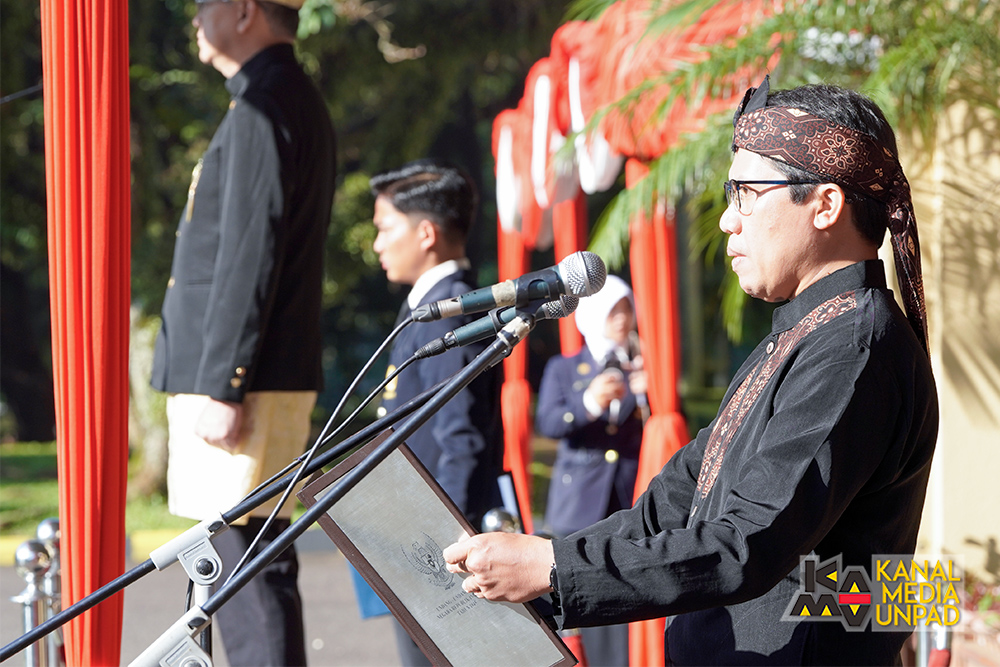 Pada upacara tersebut, bertindak sebagai pembaca naskah Pembukaan Undang-Undang Dasar 1945 oleh Wakil Dekan Bidang Sumber Daya dan Organisasi Fakultas Hukum Unpad, Prof. Dr. Maret Priyanta S.H., serta pembaca doa oleh Direktur Perencanaan, Sistem Informasi dan Transformasi Digital Unpad, Yudhie Andriyana, M.Sc., Ph.D.*