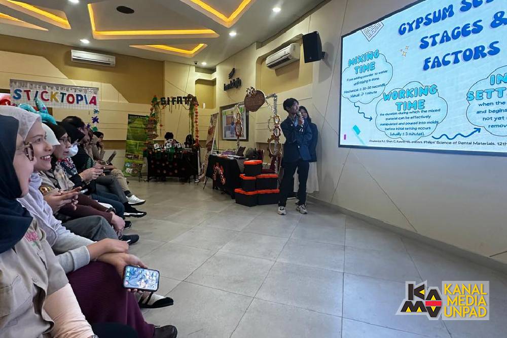 [Kanal Media Unpad] Mahasiswa Program Studi Sarjana Kedokteran Gigi Fakultas Kedokteran Gigi Universitas Padjadjaran menggelar Ekshibisi Project Based Learning Dental Material dengan tema “Inovasi dan Edukasi Bahan Kedokteran Gigi: Dari Laboratorium ke Masyarakat” yang diselenggarakan di Teater Ilmu Pengetahuan, Gedung Rektorat Unpad, Jatinangor, Rabu, 18 Juni 2025.